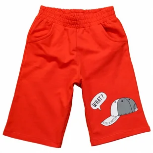 Wygodne krótkie spodenki dresowe długość do kolana w kolorze pomarańczowym na lewej dole lewej nogawki nadruk - czapka po bokach wewnętrzne kieszonki w pasie...