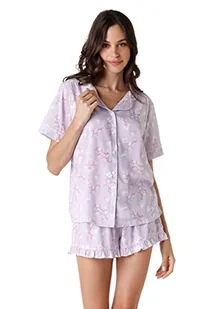 LOVABLE Otwarte cięcie męskie szorty z falbanką na dole płótno wiskoza zestaw piżamy kobiet, Drukowana lawenda, XL