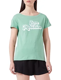Love Moschino Damskie szorty Sleeves Boxy Fit Incotton Jersey T-Shirt, ZIELONY BIA?Y, 46 PL