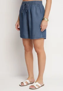 Niebieskie Bawełniane Szorty Bermudy z Elastyczną Gumką w Talii i Kieszeniami Tilmio