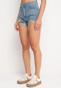 Niebieskie Bawełniane Szorty Jeansowe z Wysokim Stanem i Cyrkoniami Noemelba