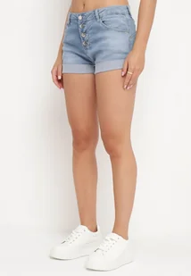 Niebieskie Klasyczne Szorty Jeansowe z Wysokim Stanem i Bawełną Zapinane na Guziki Nelabelle