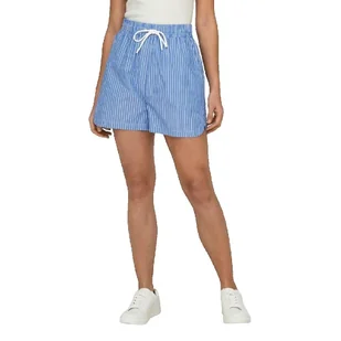 Ułatw przejście do wiosennych i letnich stylów, idealnych na piękną porę roku. Te niebieskie krótkie spodenki damskie łączą komfort i styl dzięki elastycznemu pasowi i wzorowi w paski. Idealne na luźne dni lub nadmorskie wyjścia, zapewnią modny wygląd i praktyczność.