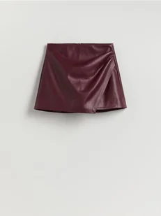 Reserved - Spódnico-szorty z imitacji skóry - burgundowy