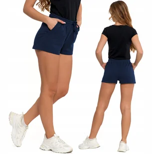 SPODENKI DAMSKIE KRÓTKIE WYGODNE SZORTY DRESOWE WIĄZANE BAWEŁNA MORAJ S NAVY