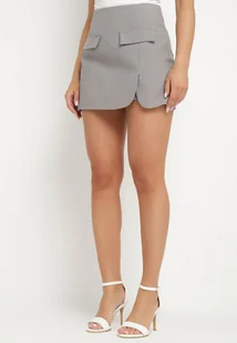 Szare Spódnico-Szorty z Wysokim Stanem i Imitacją Kieszeni w Stylu Utility Olirilis