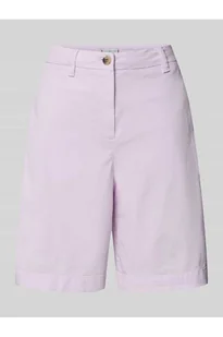 Szorty chinosy damskie od Tommy Hilfiger wyróżniają się krojem regular fit, który łączy swobodę ruchów i komfort. Dzięki mieszance bawełny i lyocellu materiał jest przyjemnie miękki i lekko, przewiewny układa się na skórze. Subtelne wyhaftowane logo oraz praktyczne kieszenie dopełniają proste wzornictwo.