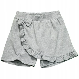 Efektowne spódniczko-spodnie krótkie spodenki z doszytą z lewej strony, częścią spódniczki ozdobione kokardką i falbanką w odcieniu szary melanż w pasie szer...
