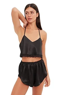 TRENDYOL Damska prosta, koronka, siatka, tkana tkanina, podkoszulek, szorty, piżama, piżama, czarny, 44