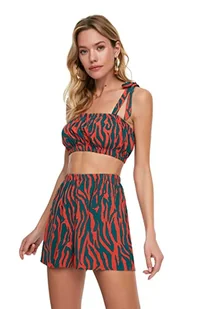 TRENDYOL Damskie szorty Bottom Top Team z zebrą z wiskozy zestaw, pomarańczowy, 40