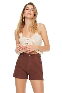 Trendyol Damskie szorty z wysokim stanem i prostymi nogawkami, Brązowy, 60
