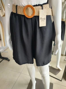Wiskozowe Spodenki Z Paskiem - Czarny One Size