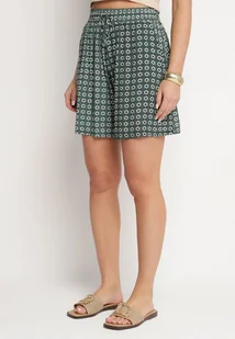 Zielone Szorty z Bawełny z Wysokim Stanem w Paski Voriene