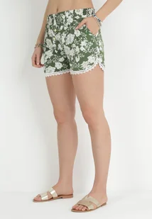 Zielone Szorty z Wiskozy o Kwiecistym Wzorze z Gumką w Talii i Koronką Ailey
