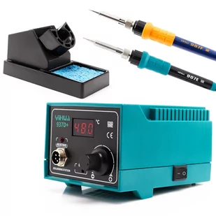 Zapasowe grzałki, uchwyt mocowania, czy samą kolbę, również można kupić w naszym sklepie. ⚡ zabezpieczenie - ESD SAFE, które chroni ją przed przegrzaniem oraz elementy elektroniczne przed uszkodzeniem. ⚡ nieskomplikowana budowa stacji, dzięki czemu urządzenie jest praktycznie bezawaryjne. ❗ W zestawie uchwyt na kolbę z gąbką, którą należy zwilżyć wodą przed użyciem. Cechy: ✔️ Stacja Yihua 937D+ z kolbą 907E ✔️ Sterowanie analogowe pokrętłem ✔️ Wyświetlacz LED pokazujący temperaturę rzeczywistą ✔️ Możliwość łatwej i szybkiej kalibracji ✔️ Stabilizacja temperatury ✔️ Zabezpieczenie ESD SAFE ✔️ Grzałka ceramiczna ✔️ Do stacji dostępnych ponad 80 rodzajów grotów - groty 900M Dane techniczne