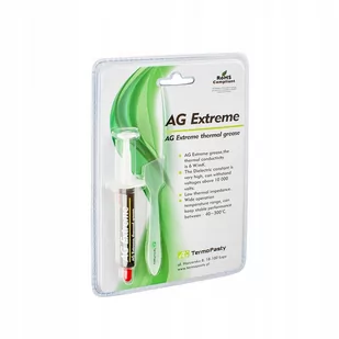 PASTA TERMOPRZEWODZĄCA AG EXTREME 3G + PACKA AG Extreme 3g Pasta AG Extreme umożliwia doskonałe przewodzenie ciepła pomiędzy elementami takimi jak: radiator odprowadzający ciepło i wentylator, CPU, GPU. Substancja jest dielektrykiem (nie jest przewodnikiem elektrycznym), co stanowi ochronę przed różnymi elektrycznymi zagrożeniami. Metoda aplikacji zapewnia prostotę zastosowania, a produkt bez problemu nakładany może być na różne elementy wyposażenia komputera, diody LED. Zastosowanie: