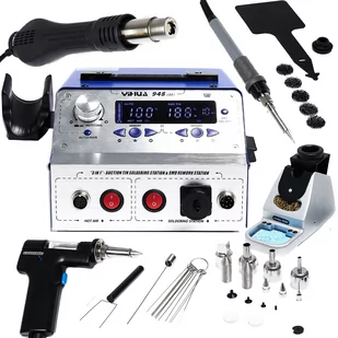 Stacja wyposażona jest w mikroprocesor PID, który steruje pracą urządzenia. Dzięki temu sterowaniu temperatura jest bardzo precyzyjna i stabilna, a dodatkowe funkcje sprawiają, że praca jest ergonomiczna i bardzo wydajna. Stacja lutownicza Yihua 948-II koryguje zadaną temperaturę w czasie rzeczywistym dzięki precyzyjnemu kontrolerowi PID, to powoduje, że stacja lutownicza ma dużą stabilność temperatury, nawet przy dużych wahaniach odbioru ciepła. Lutownica zbudowana z uwzględnieniem norm ESD, dzięki temu masz pewność, że nie uszkodzisz elementów elektronicznych w trakcie serwisu. Pompa posiada mocny element ssący i łatwo radzi sobie z ekstremalnymi przypadkami.