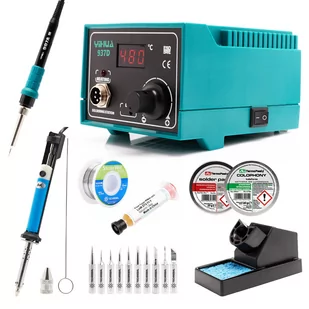 Zapasowe grzałki, uchwyt mocowania, czy samą kolbę, również można kupić w naszym sklepie. ⚡ zabezpieczenie - ESD SAFE, które chroni ją przed przegrzaniem. ⚡ nieskomplikowana budowa stacji, dzięki czemu urządzenie jest praktycznie bezawaryjne. ❗ W zestawie uchwyt na kolbę z gąbką, którą należy zwilżyć wodą przed użyciem. Cechy: