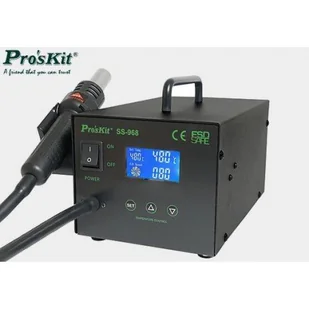Zasilanie 210 ~ 240V AC Pobór mocy 600W max Temperatura pracy 100°C ~ 480°C Wydajność pompy powietrza 23 l/min max Bezpiecznik 5x20mm; 3A/250V Wskaźniki LED Funkcja reset tak Tryb uśpienia tak Wymiary 188x127x244mm Waga 3,8kg Wbudowane zabezpieczenie termiczne tak Automatyczna funkcja chłodzenia tak Funkcja sleep mode tak - sterowanie przez wbudowany mikroprocesor - w komplecie dysze – 4szt.