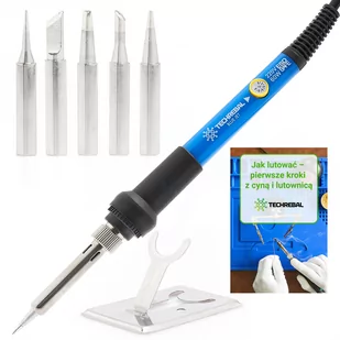 AC 220-240V 50/60Hz ✔️ moc: 60W ✔️ Temperatura pracy: 0~40°C ✔️ Rezystancja na grocie poniżej 2 Ohm ✔️ Dlugośc przewodu: 110cm W zestawie: 1️⃣ Lutownica Techrebal ”Blue Jet” TBJ60W z potencjometrem 2️⃣ 6 grotów ( w tym 1 założony już na lutownicę) 3️⃣ Podstawka pod lutownicę 4️⃣ Instrukcja „Jak lutować - pierwsze kroki z cyną i lutownicą" wysyłana w wersji elekronicznej na maila po nadaniu listu przewozowego do zamówienia.
