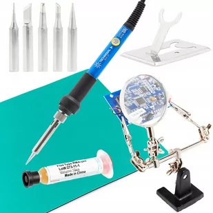 Zestaw 7w1 precyzyjna lutownica Techrebal "Blue Jet” TBJ60W z potencjometrem 60W + Topnik 223, trzecia ręka z lupą, mata