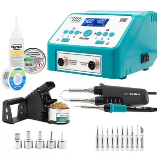 - Kompaktowa obudowa - nie zajmuje dużo miejsca ⚡ Termopęseta ułatwia demontaż elementów przewlekanych i SMD ⚡ W szybkim czasie i bez przegrzewania można zdemontować element z płyty, dzięki dwóm punktom grzejnym ⚡ Oszczędzamy tym samym czas jak i minimalizujemy ryzyko uszkodzenia elementów, które miałyby zostać ponownie użyte ⚡ Lutownica kolbowa dzięki mocnej grzałce bardzo szybko osiąga zadaną temperaturę ⚡ Stacja szybko kompensuje straty ciepła podczas pracy, co pozwala obniżyć temperaturę pracy w porównaniu do tańszych modeli ⚡ W stacji 938BD+ zostały zaimplementowane funkcje dostępne w dużo droższych modelach poprawiające komfort i bezpieczeństwo pracy takie jak: