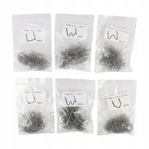 Zszywki do plastiku ”mała fala” o średnicy 0,8 mm - 100szt. Zszywki do plastiku ”mała fala” o średnicy 0,6 mm - 100szt. Zszywki do plastiku ”kąt wewnętrzny” o średnicy 0,8 mm - 100szt. Zszywki do plastiku ”kąt zewnętrzny” o średnicy 0,6 mm - 100szt.