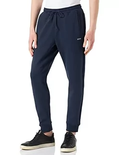 BOSS Męskie spodnie treningowe Hadiko 1 z mankietami z mieszanki bawełny z tonalną taśmą z logo, Navy410, 3XL