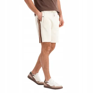 Dresowe męskie szorty z lampasami modne kremowe Ombre OM-SRSK-0156 V3 r M Wygodne szorty polskiej marki Ombre z regulacją w pasie są stworzone dla mężczyzn w...