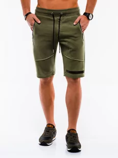 Krótkie spodenki męskie dresowe - oliwkowe W051