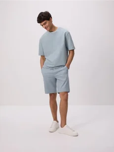 Szorty o regularnym kroju, wykonane z dzianiny z bawełną.