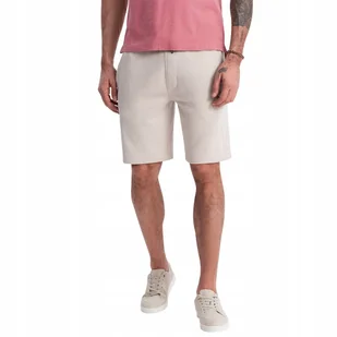 Spodenki męskie dzianinowe dresowe wygodne jasnobeżowe OM-SRBS-0139 V1 L Wygodne, luźne spodenki dresowe polskiej marki Ombre wykonane z bawełnianej dzianiny...