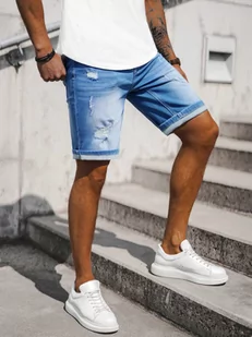 SPODENKI MĘSKIE JEANSOWE Z NAJNOWSZEJ KOLEKCJI, POSIADAJĄ PRZETARCIA NA NOGAWKACH, TROCZKI PRZY PASIE ORAZ KIESZENIE Z PRZODU I Z TYŁU, MATERIAŁ: 52% BAWEŁNA, 43% POLIESTER, 4% WISKOZA, 1% ELASTAN, MODEL (183 CM, 80 KG) MA NA SOBIE ROZMIAR L.