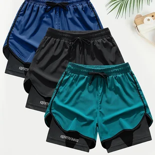 TEMU Męskie dwuwarstwowe szorty do biegania i na siłownię z kieszeniami, szybkoschnące i elastyczne ze sznurkiem do ćwiczeń.
