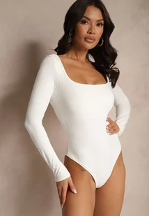 Białe Body Longsleeve o Dopasowanym Kroju z Kwadratowym Dekoltem Sesadiel