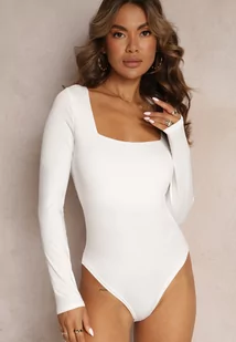 Białe Body z Kwadratowym Dekoltem i Długim Rękawem Gazzla