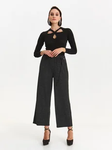 Body damskie o kroju dopasowanym, które przylega do kobiecej sylwetki i eksponuje jej walory. Posiada ono proste długie rękawy i jest wzbogacone o efektowne wycięcia u góry ponad biustem. Zostało ono wykonane z dobrej jakościowo i przyjemnej w dotyku dzianiny z dodatkiem metalizowanej nitki, ujmując swą miękkością i połyskiem. Świetnie sprawdzi się ono w przeróżnych kobiecych stylizacjach, zarówno do pracy, jak i na co dzień. Body dostępne w kolorze czarnym SBY0003CA.