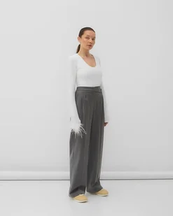 Body z poduchami z miękkiej dzianiny wiskozowej w kolorze ecru to wyjątkowo kobiecy i finezyjny fason. Okrągły i głęboki dekolt oraz poduchy podkreślają sylwetkę, a miękka i delikatna dzianina pięknie d ...