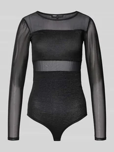 Body damskie Only;Model ‘Esther’;Efekt: półprzezroczysty;Krój: Krój slim fit;Detale: Zatrzaski w kroju;Dekolt: Okrągły dekolt;Rękaw: długi;Wykończenie materiału: Siateczka, tkana faktura