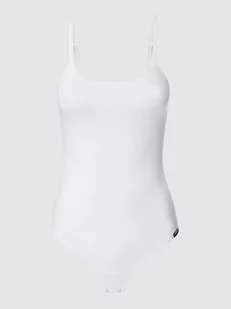Body damskie Skiny;Mieszanka bawełny i elastanu;Dopasowany krój;Okrągły dekolt;Cienkie, regulowane ramiączka;Zatrzaski;Logo;Długość tyłu w rozmiarze 36: 67 cm