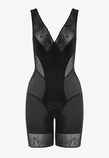 Czarne Modelujące Body z Koronkowymi Wstawkami Tisella