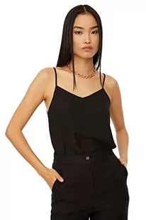 Trendyol Damska bluzka o regularnym kroju bodycon dekolt w szpic tkana bluzka koszula, Czarny, 64