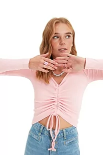 Trendyol Damska bluzka slim bodycon z dekoltem w serek, różowy, XS