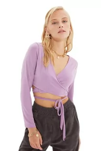 Trendyol Damska bluzka z dzianiny typu slim bodycone, dekolt w serek, lilia, XL