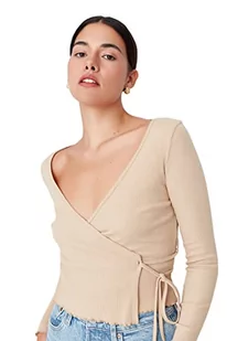 Trendyol Damska damska bluzka slim bodycon dwurzędowa dzianinowa bluzka, beżowa, XS, BEŻOWY, XS