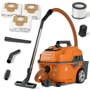 Daewoo DAVC 2000S to wydajny, uniwersalny odkurzacz warsztatowy 1500 W do pracy zarówno na sucho, jak i na mokro - idealny do sprzątania pomieszczeń, warsztatu czy placu robót oraz do podłączenia elektronarzędzi w celu zbierania pyłu i odpadów powstałych przy cięciu, szlifowaniu lub frezowaniu. Urządzenie łączy w sobie 4 funkcje w jednym: odkurzanie suche, mokre, funkcję nadmuchu i przechowywanie akcesoriów, a HEPA-filtr zatrzymujący do 99,9 % pyłu, 20 l pojemność zbiornika, 4 m wąż ssący oraz zestaw praktycznych końcówek zapewniają wszechstronną, efektywną i bezpieczną pracę w domu i warsztacie.