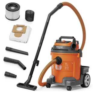 Daewoo DAVC 2014 to wydajny odkurzacz warsztatowy o mocy 1400 W zaprojektowany do sprzątania na sucho i mokro zarówno w domu, jak i w warsztacie czy garażu. Dzięki pojemności zbiornika 20 l, filtrowi HEPA, funkcji dmuchawy i możliwości zbierania cieczy oraz pyłu po remoncie, zapewnia wszechstronne, efektywne i bezproblemowe porządki. Zestaw zawiera filtr HEPA, filtr piankowy, wąż ssący, szczotkę i dyszę szczelinową, co ułatwia czyszczenie podłóg, tapicerki, narzędzi i trudno dostępnych miejsc.