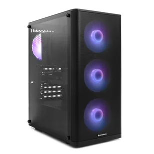 W obecnej konfiguracji 600 W oferuje ogromny zapas mocy na ewentualną przyszłą rozbudowę komputera o więcej dysków lub pamięci, ale również na wymianę karty graficznej na model pobierający znacznie więcej energii. Obecnie nadmiar mocy pozwoli na pracę zasilacza pod optymalnym obciążeniem, a co za tym idzie bez zwiększania obrotów wentylatora, co pozwala zachować wysoką kulturę pracy zestawu, zapewnioną również przez resztę dobranych podzespołów i obudowy. Obudowa ENDORFY Ventum 200 ARGB Komputronik Infinity R550 [W] został osadzony w jednym z najświeższych modeli obudów ENDORFY. Cechuje ją przede wszystkim to, co już zdradza po części nazwa „Ventum”, czyli wybitna wentylacja zapewniona przez łącznie cztery duże wentylatory, w tym trzy na froncie pokrytym w całości drobną siatką. Takie rozwiązanie tylko minimalnie ogranicza przepływ powietrza, ale skutecznie zatrzymuje drobinki kurzu przed dostaniem się do wnętrza obudowy.