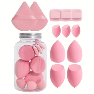 TEMU Japoński zestaw 12 szt.: 2 trójkątne pudrowe pufki, 4 gąbki do makijażu i 3 mini pufki do różu miękkiego weluru do konturowania, oczu i kącików.