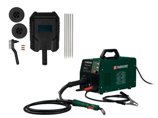 Akcesoria zawarte w zestawie: 1 uchwyt na elektrody MMA, 5 elektrod spawalniczych MMA (2 x 1,6 mm o 2 x 2,0 mm o 1 x 2,5 mm), 1 palnik do drutu MIG, 200 g stalowego drutu, 200 g aluminiowego drutu, 5 dysz (do stalowego drutu: 0,6 mm o 0,8 mm o 0,9 mm o 1,0 mm / do aluminiowego drutu: 1,0 mm - wstępnie zamontowana), 1 maska spawalnicza, 1 szczotka druciana